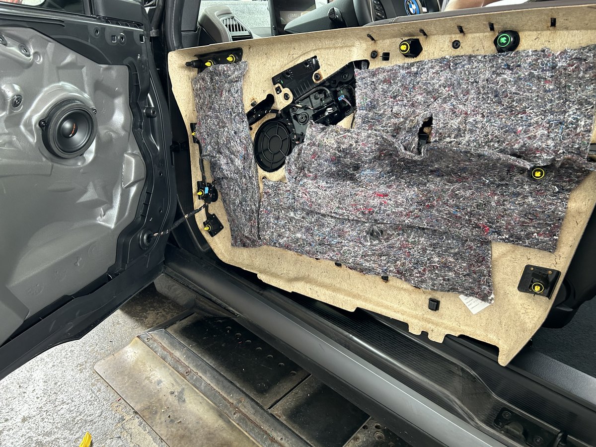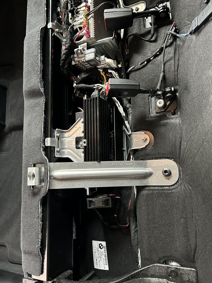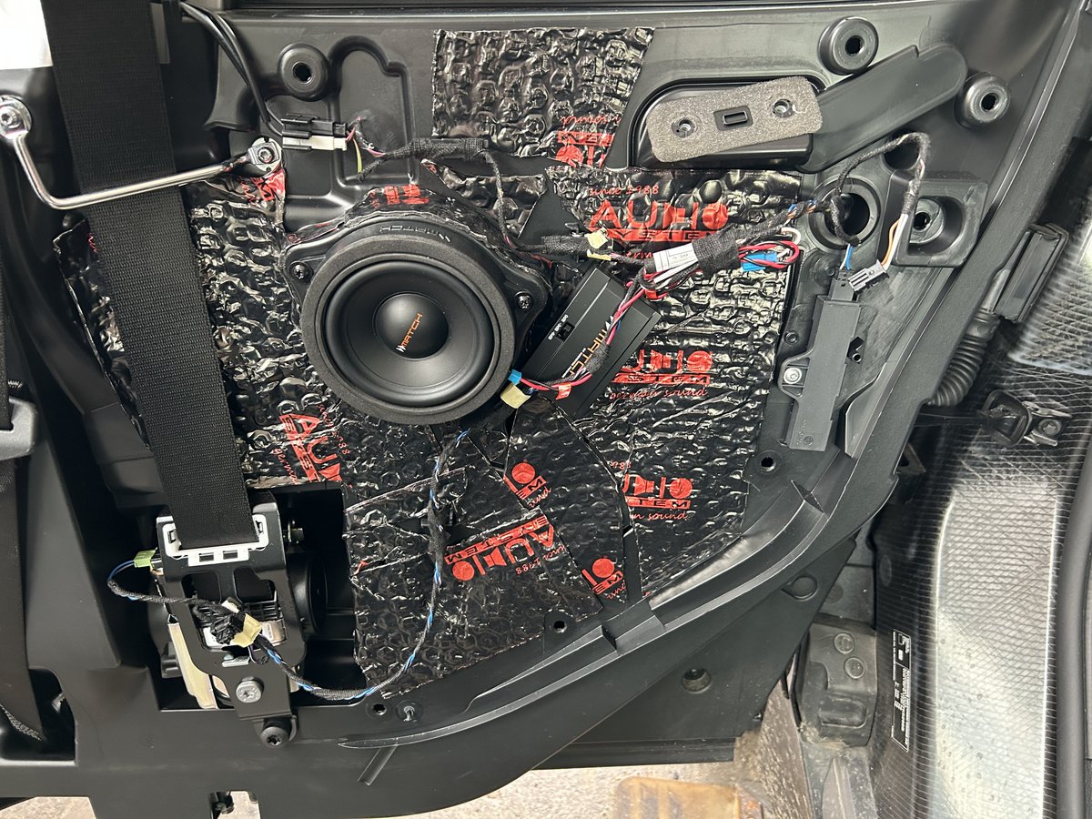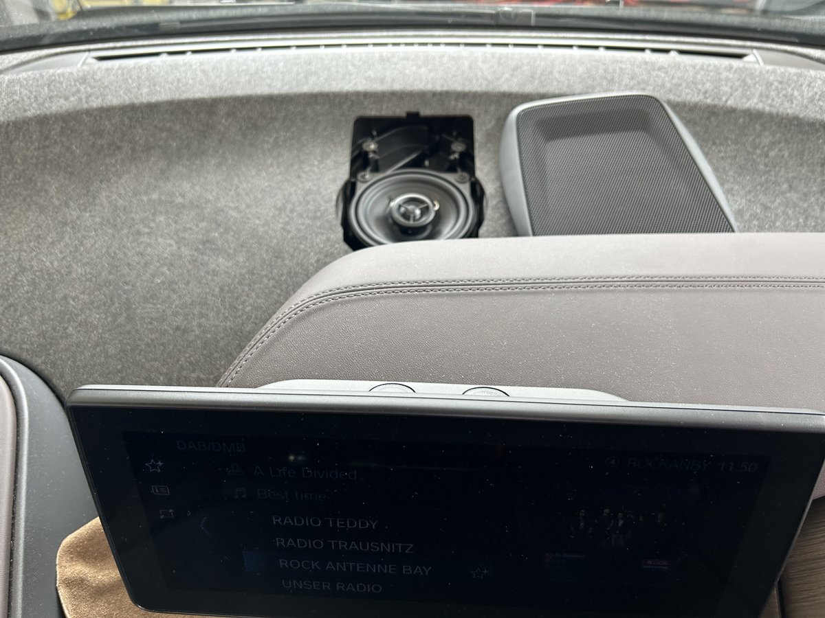 Bei diesem BMW i3 haben wir sämtliche Lautsprecher durch neue Lautsprecher von match ersetzt. Die Tieftöner wurden durch audison Lautsprecher ersetzt. Zusätzlich wurde im Kofferaumboden ein Helix Subwoofer samt speziell angefertigten Gehäuse verbaut. Unter der Rücksitzbank wohnt jetzt der match 10 Kanal DSP Verstärker. Sämtliche Verkleidungen wurden mit Audio System Alubutyl und Dämmvlies gedämmt.