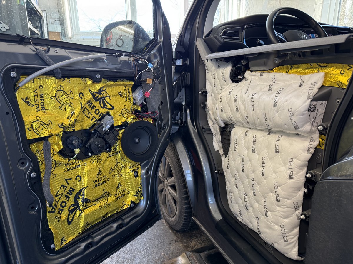 In diese VW T6.1 Caravelle habe ich neue Helix Lautsprecher in die Türen und A-Säulen, einen ARC8 Subwoofer unter den Beifahrersitz und einen match 5 Kanal DSP Verstärker im Armaturenbrett verbaut. Die Türen wurden ordentlich mit Comfortmats Alubutyl und Steg Dämmvlies gedämmt. Der DSP wurde zum Abschluß mit meinem Meßsystem ordentlich auf das Fahrzeug eingemessen.